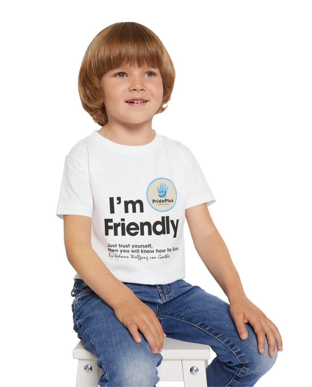 慈善活動団体プライド・プラスが贈る、特別なメッセージが込められた子ども用アファメーションTシャツです。