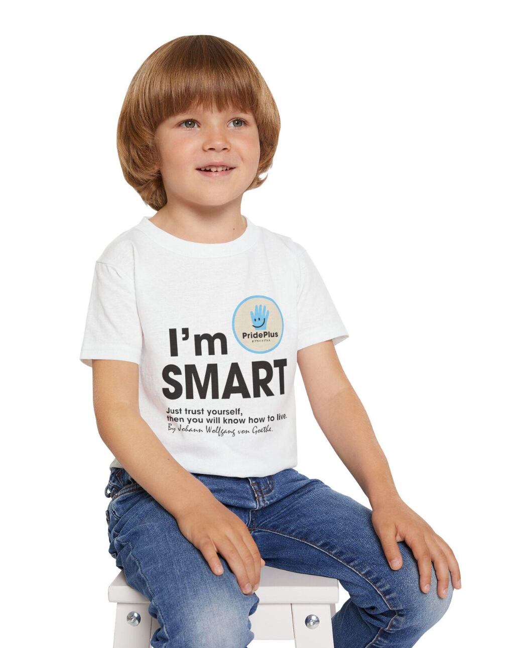 慈善活動団体プライド・プラスが贈る、特別なメッセージが込められた子ども用アファメーションTシャツです。