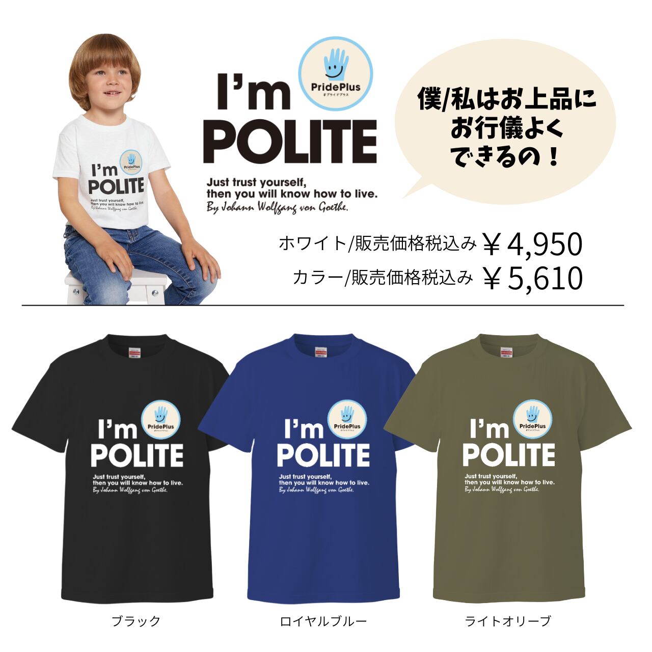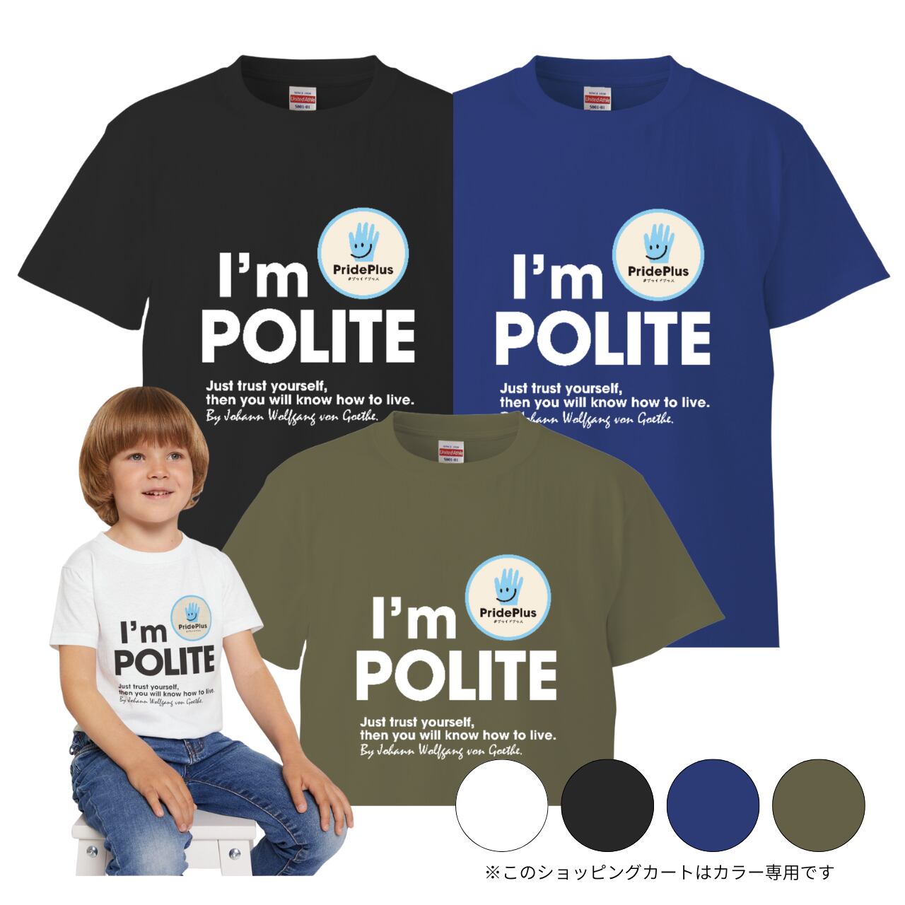 アファメーションkids用Tシャツ【POLITE】by PridePlus カラー3色