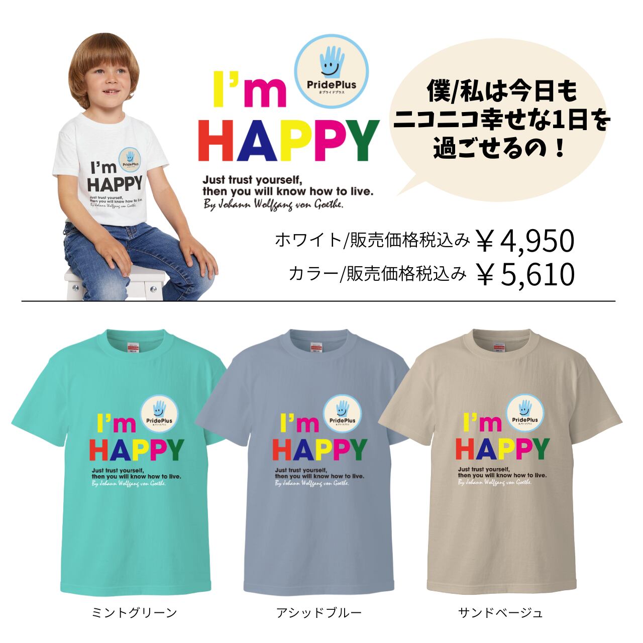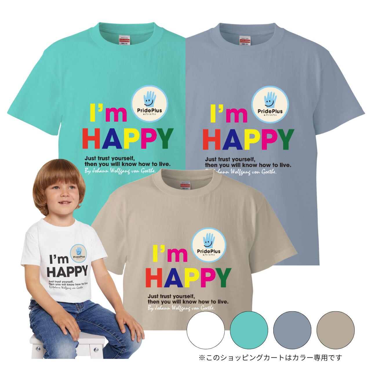 アファメーションkids用Tシャツ【HAPPY】by PridePlusカラー3色